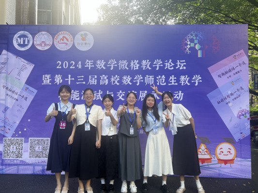 2024年5月17日至20日,数学微格教学论坛暨第十三届高校数学师范生教学技能测试与研讨展示活动在广西师范大学落下帷幕,来自全国71所院校的381名学生参与数学微格教学技能竞赛,85所院校的1230名学生的410件作品参与数学微课设计能力竞赛。我院顺利获得初赛、决赛选拔,在数学专业教师和一线中学数学教师协力精心指导下,派出6名学生参与微格教学技能竞赛,4组学生参与微课设计能力竞赛,取得优异成绩。其中,学院荣获优秀组织单位称号,在微格教学技能竞赛中,张海丽荣获一等奖,肖永芳、蔡嘉颖荣获二等奖,吴雨薇、张碧桑、原佳怡荣获三等奖;在微课设计能力竞赛中,许燕鑫、何艳清、林易鹏小组和范雯慧、荆露莹小组荣获一等奖,曾佳烨、陈嘉怡小组荣获二等奖,黄海政、缪佳欣小组荣获三等奖。