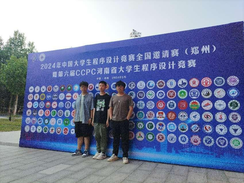 2024年中国大学生程序设计竞赛全国邀请赛(郑州)于 2024 年 5月 11 至 12 日在郑州轻工业大学举行,本次CCPC(全称China Collegiate Programming Contest,中国大学生程序设计竞赛)郑州邀请赛吸引了北京理工大学、山东大学、同济大学、北京邮电大学、华东师范大学、杭州电子科技大学等150多所高校的442支队伍参加。由数学与计算机科学学院2022级软件工程专业王嘉铭、2021级计算机科学与技术专业苏坤灿、2021级软件工程专业侯灿坤组成的“0123456789”队(指导教师高大利、庄世芳)奋力拼搏,取得银奖,在所有参赛队伍中排名45名。