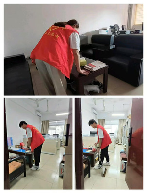 (9月30日,志愿者们清扫办公室,营造干净整洁的办公环境)