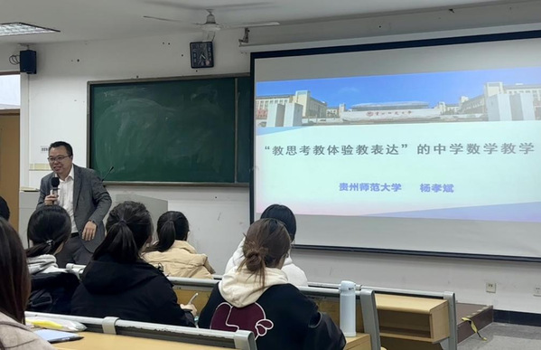 12月17日,贵州师范大学数学教育研究所所长、贵州师范大学小学数学教学质量强基行动指导中心主任、中国少数民族教育学会数学教育专业委员会常务理事杨孝斌教授,应邀为我院2022级数学与应用数学专业学生作题为“教思考教体验教表达”的中学数学教学讲座。