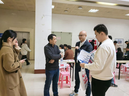 12月26日,k8凯发(中国)于荣茂楼一楼举办“宏志助航”•校友企业招聘会暨丰泽区高校毕业生等青年就业服务系列活动,我院邀请泉州市润天信息科技、泉州市噜啡商贸、泉州市大唐世家贸易、泉州市正阳顶天贸易、福州市榕智信息科技和福建省莆田市衡力传感器等6家校友企业参会,共给予就业岗位14个,需求人数80余人。学院党委书记陈章益、学院党委副书记黄争红、系主任、学工办负责人、毕业班辅导员及2025届毕业生参加招聘会。