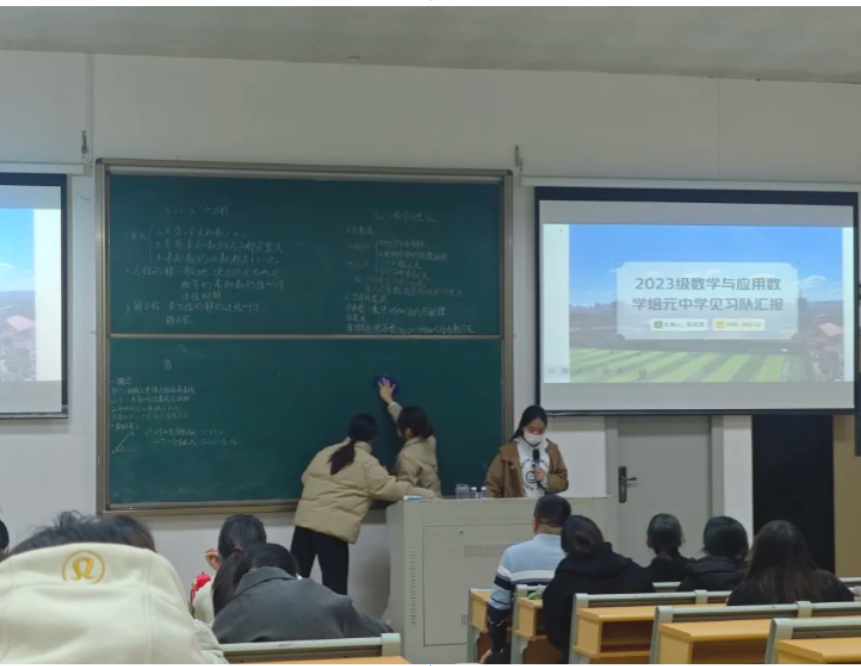 系主任郑雪静老师在总结讲话中对2023级学生在见习期间展现的持续态度和显著进步予以充分肯定。她强调,教育见习是贯通教育理论与教学实践的核心环节,是师范生成长的关键阶段。全体数学专业学生要牢固树立师德意识,在日常学习和实践中自觉强化教师职业认同,持续锤炼普通话、板书设计、课堂驾驭能力等教学基本功,全面对标“四有”好老师标准,为未来投身教育事业奠定扎实基础。