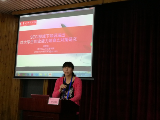 会上,曾宪枢老师作了《SECI视域下知识溢出对大学生创业能力培育之对策研究》的专题发言,分享了SECI及知识溢出理论在高校的应用模型。