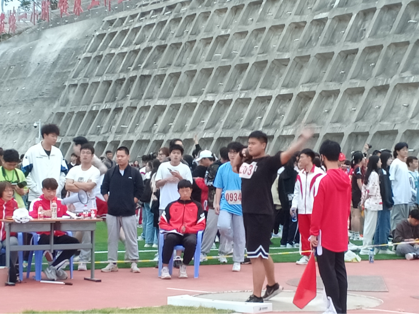 1116日下午,我院多位同学参加校运会男子甲组铅球比赛。经过多轮的投掷,来自2021级国际商务专业的陈俊炫同学以9.84米的成绩取得冠军。