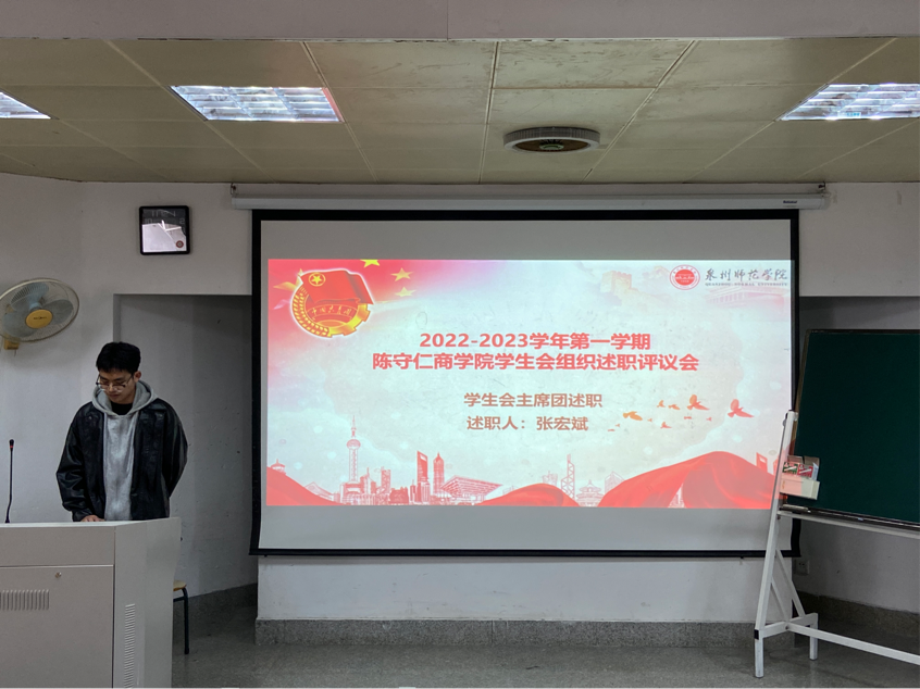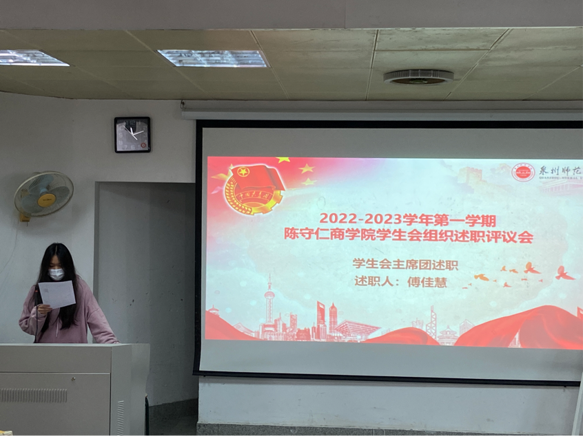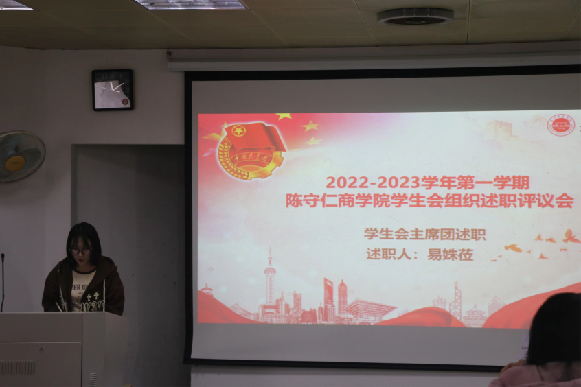 为进一步加强学院学生干部队伍建设,充分发挥学生干部的持续性和主动性,有助于学生会工作科学化、规范化、精细化管理,224日,陈守仁商学院于文科楼召开2022—2023学年第一学期学生会述职评议大会。本次会议由院学生会主席易姝莅主持,学生会各部门成员以及部分学生代表参加。