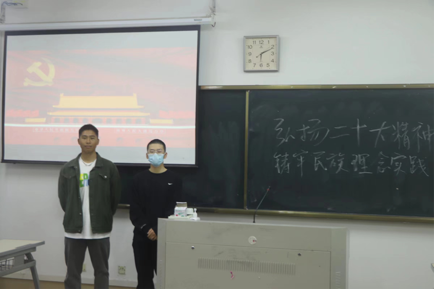 2022级国际贸易专业一班同学顺利获得问答的形式,回顾了铸牢中华民族共同体意识的历程,同学们争先抢答,互相研讨,深化了对民族精神的理解。接着将视角移回现在,向同学们展示了新时代铸牢中华民族共同体意识的行动指南,展望未来。2022级电子商务专业二班的同学采用知识竞答的方式,帮助同学们深刻理解民族精神。