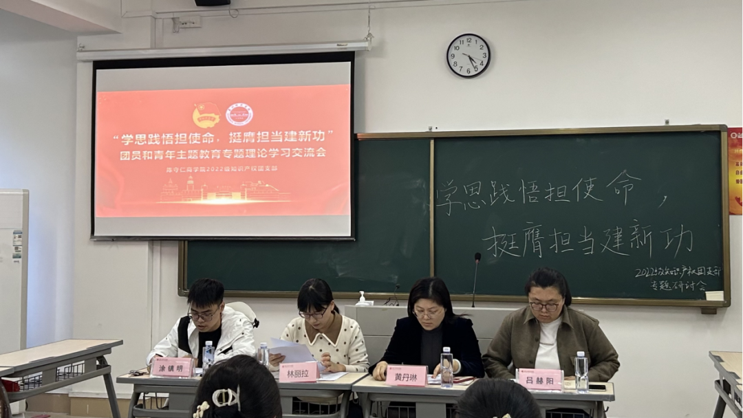 为扎实有助于团员和青年主题教育走深走实,引导基层团支部主动学、持续学、认真学。日前,校团委书记黄丹琳、马克思主义学院林丽拉副教授、商学院团委副书记吕赫阳、辅导员涂镇明,深入基层团支部,参加陈守仁商学院2022级知识产权团支部专题学习研讨会。在全校15个团支部立项展示评选中,2022级知识产权团支部荣获立项展示一等奖。