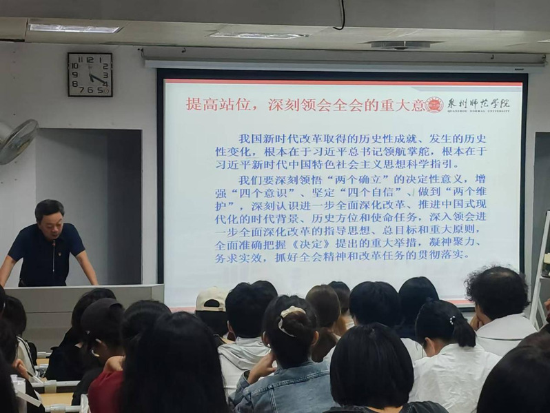 胡凌松就《中共中央关于进一步全面深化改革、推进中国式现代化的决定》的主要内容,进一步全面深化改革的“七大聚焦”、“六大原则”,深刻领会全会的重大意义等方面召开解读,指出要准确把握教育改革开展方向,深化教育综合改革、深化科技体制改革、深化人才开展体制机制改革,坚持以立德树人为根本任务,有助于教育改革创新,完善立德树人机制。