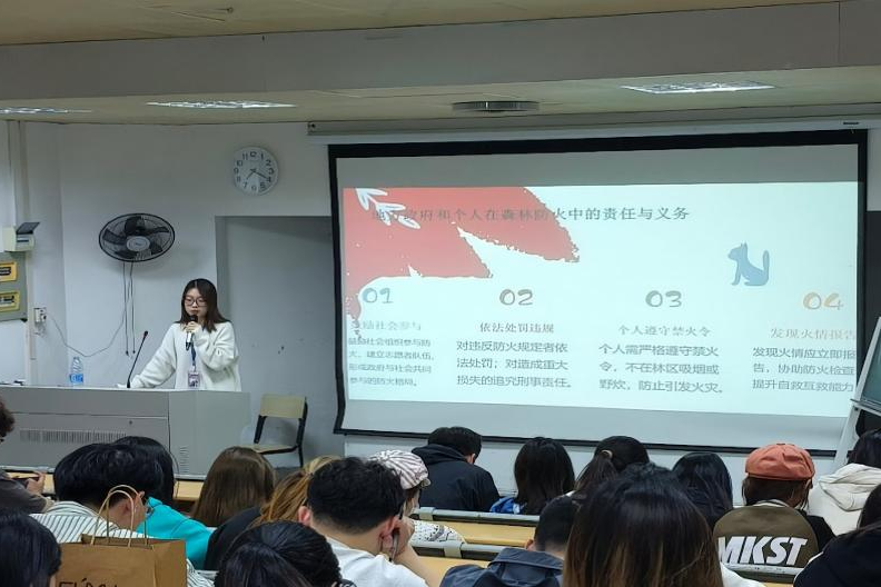 活动期间,学院以班级为单位召开专题学习会,系统讲授森林火灾防控知识。课程设置涵盖火灾形势分析、法律法规解读、防火行为规范及应急处置技能四大模块,结合森林火灾真实案例影像资料,直观呈现火险危害与救援场景。在“森林防灭火与青年责任”主题研讨环节,与会学生围绕主题展开热烈讨论,深入探讨新时代青年的环保责任与使命担当。