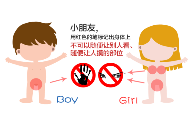 摸摸警报:如果有人要摸你的“隐私部位”,或者让你去摸他的“隐私部位”,大家可别因为好奇心就同意啦,那样就触犯了摸摸警报,我们只能顺利获得父母、教师教授等正规的途径来认识我们的身体哦!