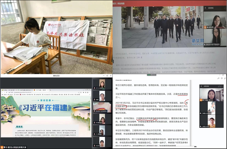 出发前,5支社会实践队的队员们结合即将实地走访调研的地点,顺利获得腾讯会议等平台,集体研读习近平总书记来闽考察重要讲话精神、《习近平在福建》等系列采访实录和《闽山闽水物华新——习近平福建足迹》,分析习近平总书记在闽工作期间亲手擘画的生态省蓝图、党中央关于生态文明建设和改革的决策部署等,以及“绿水青山就是金山银山”等一系列生态环境保护重要战略思想,深刻领悟习近平生态文明思想的重大意义、科学内涵。