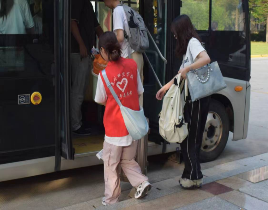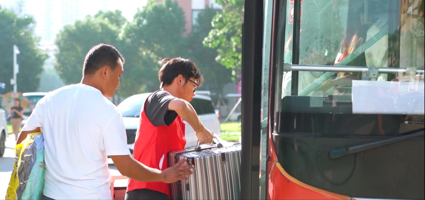 此次志愿迎新活动,各环节的志愿者都发挥着不可替代的作用。校门口的志愿者会持续向新生询问是否需要帮助,引领新生前往学院注册报到点报到。荣茂楼下则是等待已久的校园公交车和帮助新生搬运行李上车的志愿者们。今年的新生报到期间,私家车可以进入校园,进一步为新生给予便捷,因此路边的志愿者也会耐心地为学生家长指引路线。虽已入秋,泉州依旧骄阳似火,但烈日的炙烤和阳光的灼烧都挡不住志愿者们迎新的热情。
