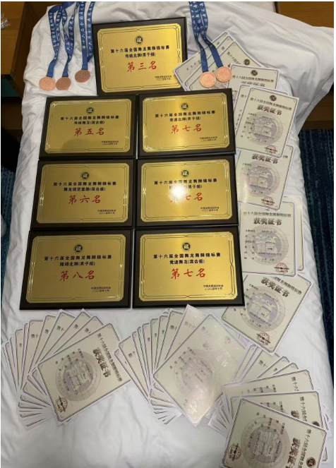 10月22日至27日,由中国龙狮运动协会、江阴市人民政府联合主办的第十六届全国舞龙舞狮锦标赛在江阴市飞马水城文体馆举行。我院选派16名同学组成龙狮代表队参加比赛。经过赛前充分刻苦的训练,运动员们凭借他们深厚的基本功和赛场上的精彩演绎,最终取得以下成绩:规定舞龙(混合组)项目第六名;传统舞龙(混合组)项目第五名;障碍舞龙(男子组)项目第七名;竞速舞龙(混合组)项目第七名;北狮传统(男子组)项目第三名;北狮障碍(男子组)项目第八名;北狮竞速(男子组)项目第七名;创意龙狮项目三等奖的好成绩。