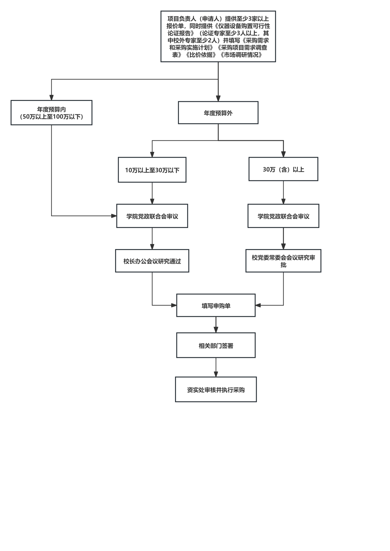一、采购项目立项按学校“三重一大”制度执行。采购预算三万元以上的采购项目,需经党政联席会研究立项。