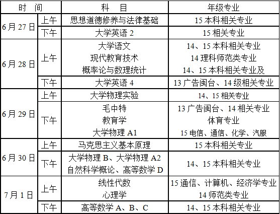 (二)6月27日-7月1日,全校性公共课程统一考核。