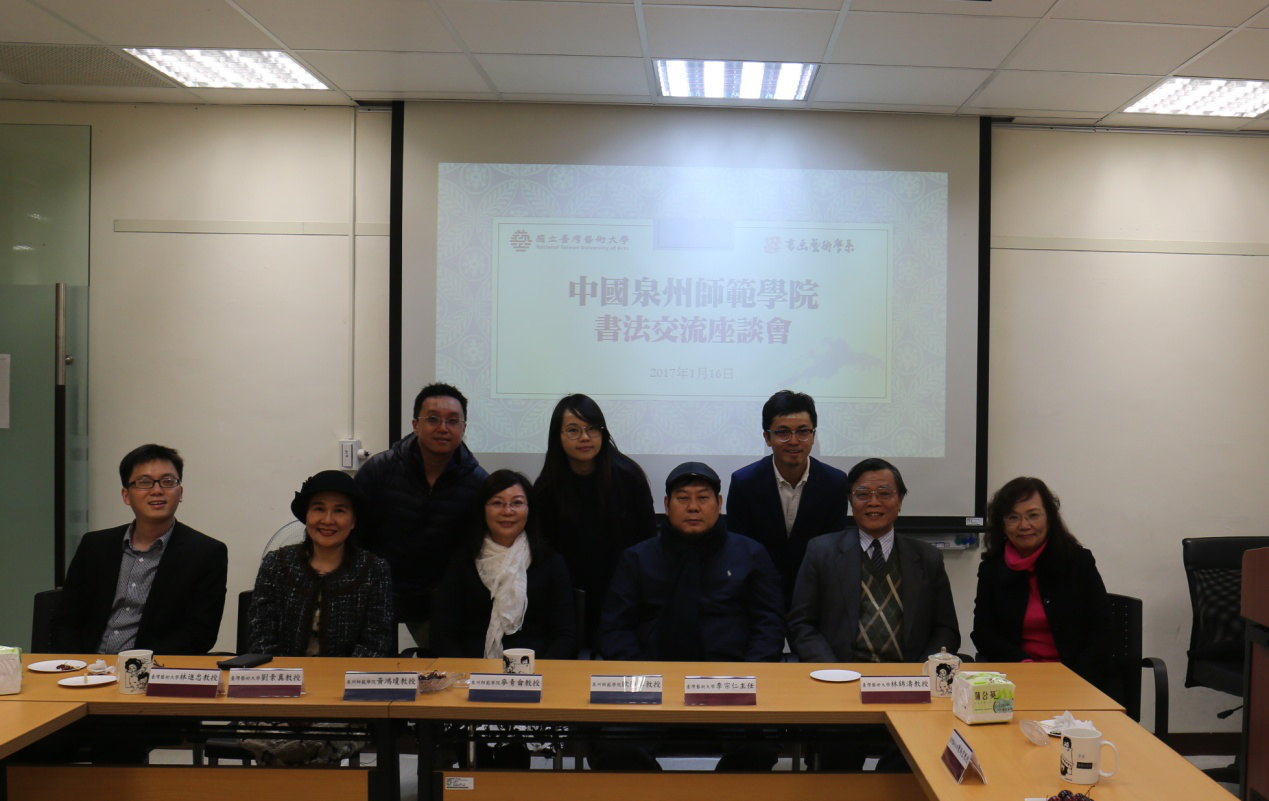在台湾艺术大学书法研讨座谈会上,台湾艺术大学原副校长林进忠教授,书画艺术学系李宗仁主任,刘素真教授,林锦涛教授,陈炳宏副教授,蔡介腾副教授及该校博士生共同出席了会议。会议过程气氛浓烈,双方就书法专业本科和研究生教育、科研学术等方面进行了深入研讨探讨。两校为有助于海峡两岸书法教育共同繁荣开展达成共识,希望以书法文化作为纽带,顺利获得共同举办书法展览,定期召开学术研讨,联合办学互通往来等形式促进台湾与大陆间的文化合作与开展。会后,黄鸿琼教授向台湾艺术大学书画艺术学系赠送墨宝以作纪念,台艺大李宗仁主任向k8凯发(中国)给予了相关教学材料以作参考并带领研究所老师参观了该校国际展厅及校园。