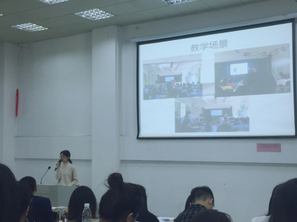 大会上,各支实习队伍均派出了几位代表对本次实习活动进行个人总结。同学们从各种角度出发,分享了自己在实习过程中收获到的知识。其中多数人均提到了备课的重要性,强调模拟试讲以及听取各方建议不断修改的必要性。郑婉琼同学就实习期间的备课心得展开分享,再次强调读懂文本对实习老师召开教学工作的意义。韩宛秀同学更是根据自己的亲身经验告诉同学们实习老师均存在的问题,传授了诸多改进的方法。董玲同学则以鲜明直观地图片形式为同学们展现了实习生活情景,提出要关注每一位学生,发现他们身上存在的闪光点的想法。