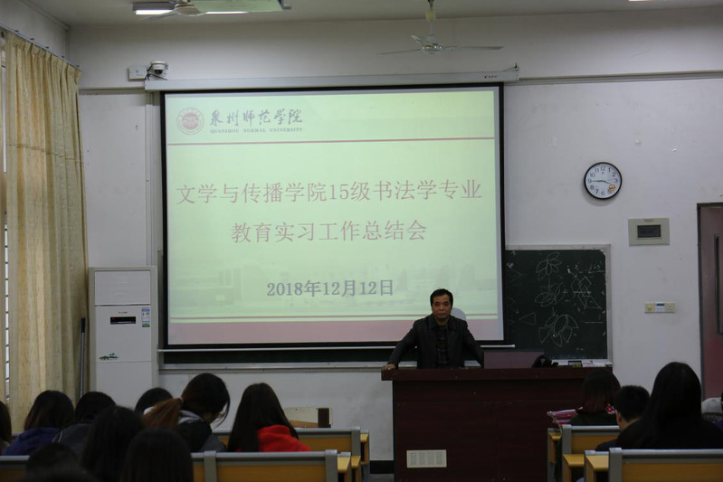 12月12日,书法系在文学与传播学院召开2015级教育实习总结大会,此次实习为期六周,是书法学专业同学在校经过三年多的学习生活后将所学的知识应用于课堂教学的一次具体实践。