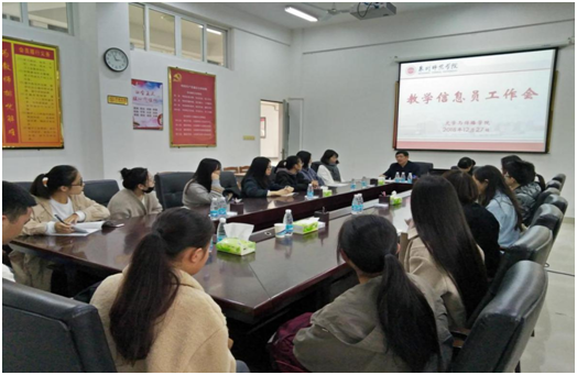 12月27日下午,文学与传播学院教学信息员工作会在俊秀东楼会议室召开。会议由副院长杨秋生主持,教学科研办公室主任陈明丽,督导组长邱晓明,学生科副科长、团委副书记陈燕红老师等参加此次会议。
