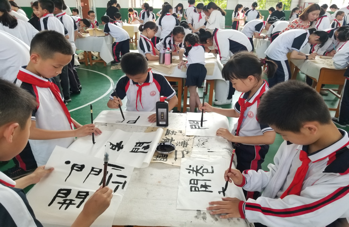书法系书法学17级专业全体同学40人在张爱华老师的带队下,走进泉州市经济开发区实验学校,为基地三至八年级的孩子们上了一堂别开生面的书法大课。