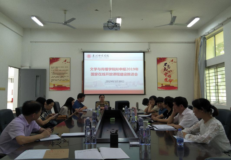 5月30日下午,文学传播学院召开拟申报2019年国家在线开放课程建设推进会。院长谢英,副院长杨秋生、刘文波,教学科研办公室主任陈明丽,教师口语、闽南历史文化和闽南文化概述三门课程的负责人及成员参加会议。会议由谢英院长主持。