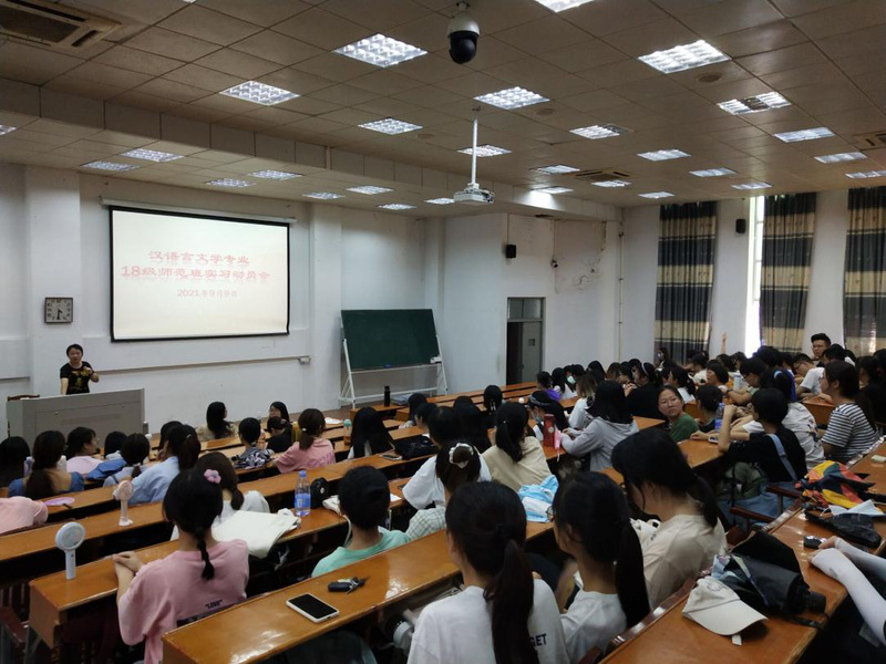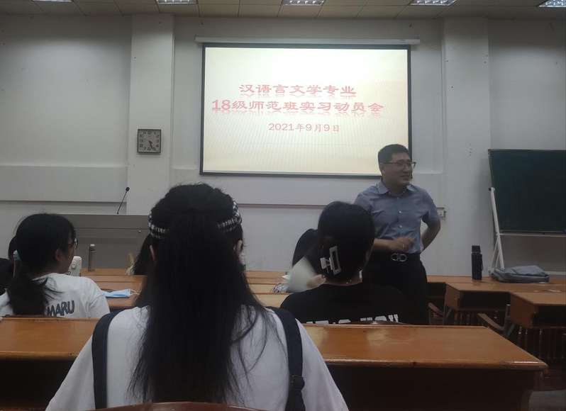 为提高师范生自身职业素养和职业技能,明确见习目标与方向,提高教育见习工作的质量和效益,保证教育实习活动顺利召开,文传学院于9月9日在教学楼文A314召开2018级中文师范专业毕业生实习动员大会。学院中文系王伟主任、李莉副主任、实习带队教师及18级中文师范专业全体同学参加了此次大会。会议由李莉副主任主持。