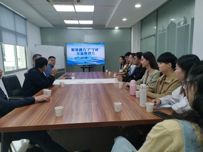 一行人第一时间来到泉视新媒体开展有限公司,进行以媒体融合“产学研”为主题的座谈会。公司总经理潘海阳、总经理助理黄佶就公司的组织架构、业务矩阵、运营模式等进行了全面的介绍。泉视新媒体开展有限公司是泉州广播电视台全资子公司,主要运营“无线泉州”APP、“新闻广角”微信公众号等新媒体业务。