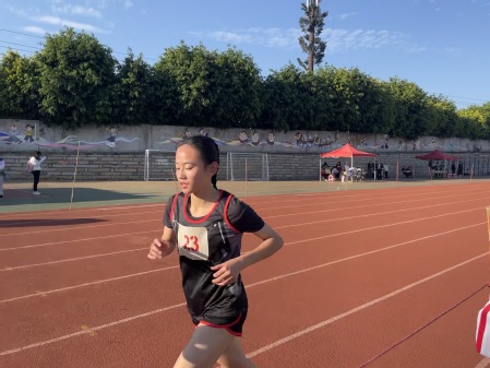 比赛开始前,吴婷敏同学精神抖擞,自信满满。随着一声枪响,她足下生风,如离弦之箭般冲了出去。随着圈数增加,吴婷敏同学始终步幅匀称地处于领先位置,与对手逐渐拉开差距。比赛进行到中程,许多选手都放慢了步伐,而吴婷敏同学始终坚定不移地向前迈步。最后一圈,吴婷敏同学全力冲刺,在观众们热烈的加油声中冲过了终点,摘得第一名的桂冠。
