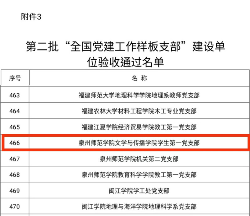 近期,教育部办公厅印发《关于公布第二批全国党建工作示范高校、标杆院系、样板支部培育创建单位验收顺利获得名单的通知》(教思政厅函〔2022〕12号),经建设单位对标自查总结、省级党委教育工作部门把关审核教育部思想政治工作司审查,文学与传播学院学生第一团支部顺利顺利获得验收。