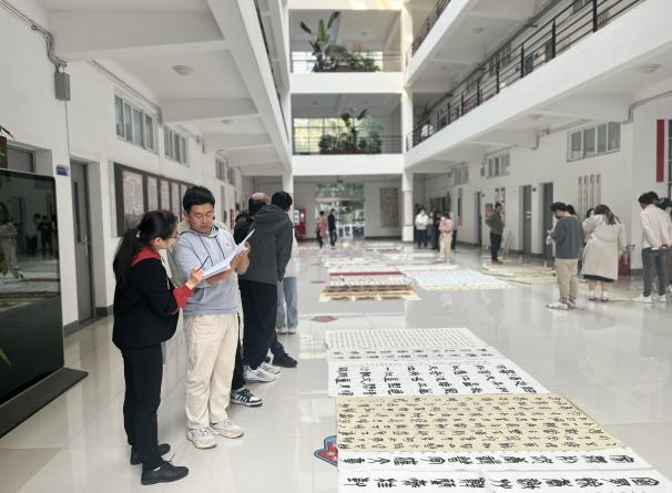 2023年3月9日,我院2020级美术领域(书法方向)艺术硕士研究生毕业创作作品点评指导会在学院一楼大厅召开。由研究生部主任黄鸿琼教授、陈钊副教授、张爱华讲师、陈刚博士、陈艺双博士、余智鸣博士、萧廷钧老师和许雅婷老师等多位书法系老师对学生们的毕业创作书法作品进行现场点评与指导。