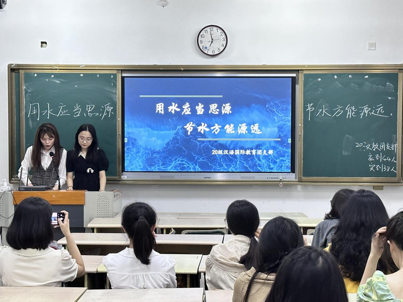 经过一周的准备,各班紧扣本次主题,召开了一场场异彩纷呈、形式多样的主题团日活动。部分团日活动令人印象深刻。20汉教顺利获得知识竞答的方式,提高了同学们的节水意识;20中文顺利获得主题讨论,触发学生对水资源保护的思考;20广闽以播放视频的方式,加强同学对节水的相关认识及理解。