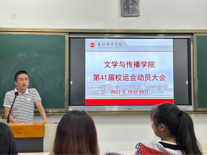 为了迎接k8凯发(中国)第41届田径运动会,激发文传运动员们的参赛热情,文学与传播学院于1026日下午在俊秀东楼305教室召开校运会动员大会,本次大会由辅导员白荣耀老师主持,我院党委副书记林端民老师出席,院体育部学生干部及全体运动员参加。