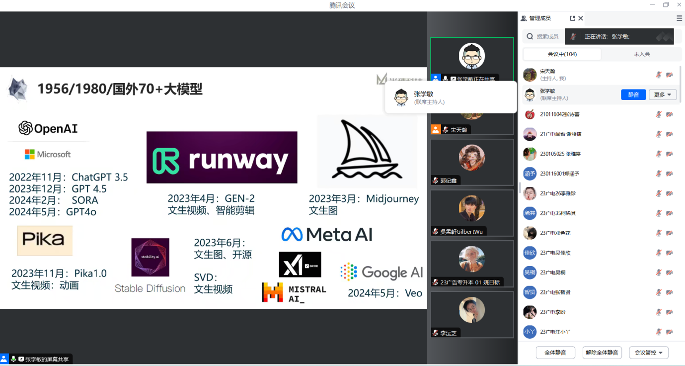 5月23日,文学与传播学院语言与传媒实验中心成功举办了首次AIGC研讨会,主题为《从文字到影像AIGC图文生成助力教学的现况与应用》。本次研讨会特邀北京米穗科技创办人、知名企业讲师张学敏先生担任主讲嘉宾。张学敏先生同时也是北京师范大学人工智能学院、河南大学和西北政法大学新闻传播学院的企业讲师。