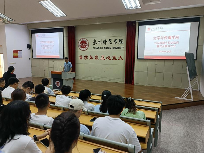 为落实立德树人的根本任务,保证新生军训工作的有序推进,提升新生安全防范意识,9月8日上午,文学与传播学院于中山报告厅三楼举行新生军训动员与安全教育大会。学院领导、辅导员老师,及2024级新生参加了此次大会。