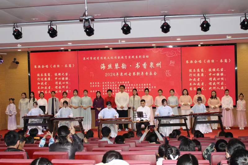 值得一提的是,古琴作为学院“诗书琴茶香”五雅文化育人中重要载体,不断备受学院重视。近年来,学院还持续联合泉州市文化广电和旅游局、泉州市图书馆等单位,共同举办了《宋元中国 书香琴韵》中国古琴艺术系列活动、《吾有琴韵 弦歌清音》古琴音乐会以及《海丝琴韵 书香泉州》2024年泉州古琴新年音乐会等一系列高雅艺术活动,顺利获得古琴艺术的传承与发扬,为“宋元中国·海丝泉州”城市形象品牌的塑造与传播作出贡献。