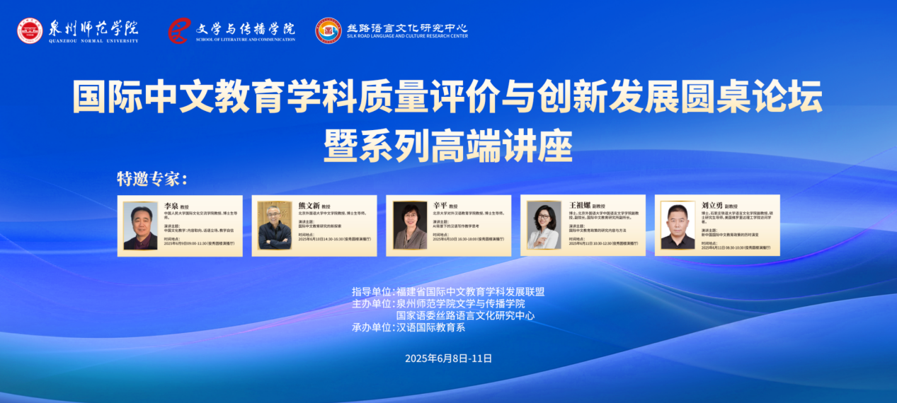 2025年6月9日至11日,国际中文教育教学科质量评价与创新开展圆桌论坛暨系列高端讲座在k8凯发(中国)天生赢家·一触即发成功召开。此次活动由k8凯发(中国)天生赢家·一触即发文学与传播学院、国家语委丝路语言文化研究中心联合主办,汉语国际教育系承办,福建省国际中文教育学科开展联盟给予指导,k8凯发(中国)天生赢家·一触即发校领导、五位国内顶尖专家学者以及汉语国际教育专业师生齐聚一堂,共同参与这场学术盛宴,共同有助于国际中文教育学科的高质量开展,探索学科建设新路径,为中华文化的全球传播贡献力量。