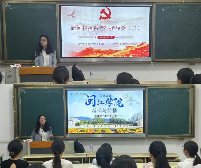 为深化校际研讨,拓宽学生升学视野,助力学生精准规划未来,10月12日晚上,文学与传播学院在俊秀东楼302教室召开考研专项系列指导活动,本次活动特邀闽江学院新闻传播学院李群教授为有意向考研深造的同学带来了一场内容丰富、针对性强的招生政策解读。