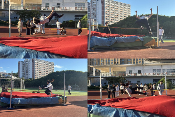 跳跃组涵盖跳高、跳远两大项目。两项目均对运动员的核心力量、身体协调能力和跳跃技巧有较高要求。为此,跳高组逢周一、周五进行运动员的体能强化训练,其余时间为上垫实操训练。跳远组则在统一的弹跳力核心训练之余,更有针对性地将急行跳远和三级跳远的训练进行分开指导,同时展开阶段性训练,并在第一阶段结束后进行考核。在科学的训练计划与适当的运动负荷下,跳跃组运动员一次次挑战极限,突破自我,敢于追求更高、更远的目标,以训练时的辛劳汗水培育成效后的累累硕果。