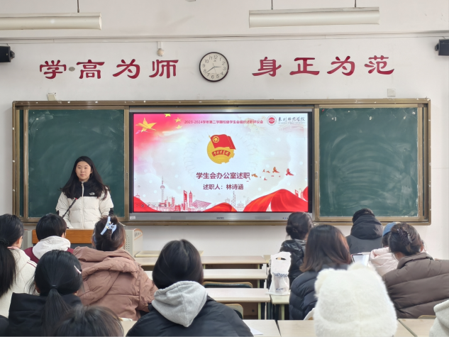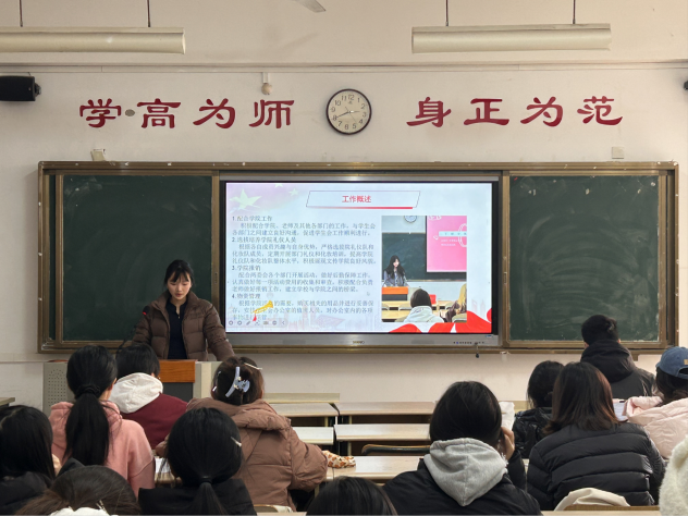 主席团成员和各部门代表依次进行述职报告。各位学生骨干回顾了今年的履职情况,对9月至12月期间策划组织的活动进行了全面总结,对工作召开过程中的亮点与不足进行了总结与反思,明确了下一阶段具体的改进目标和实施方案。本次会议气氛庄重,展现出学生干部求真务实、锐意进取的精神品质。