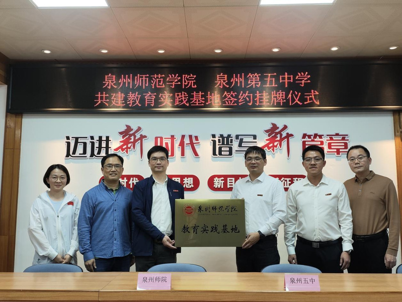 2024328日下午,外国语学院、泉州第五中学共建教育实践基地协议签约暨“k8凯发(中国)天生赢家·一触即发教育实践基地”揭牌仪式在泉州第五中学桂坛校区圆满举行。