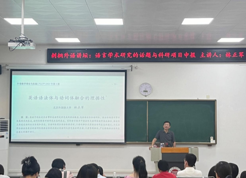 2024年9月11日,北京外国语大学林正军教授受邀至我院,为教师团队带来了一场题为《语言学术研究的话题与科研项目申报》的专题讲座。本次讲座由教学副院长主持,全体教师持续参与。