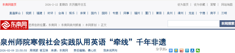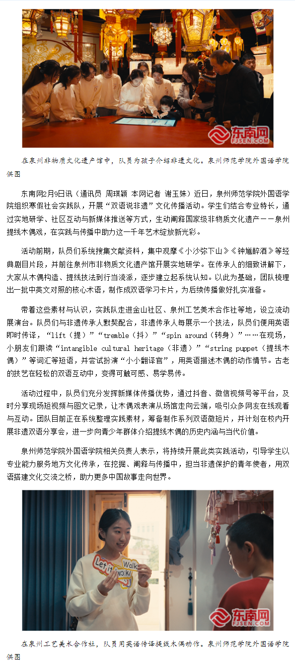 东南网:泉州师院寒假社会实践队用英语“牵线”千年非遗