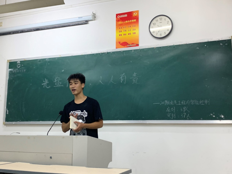 学院各班级认真组织召开主题班会活动,利用现有资源,采用形式多样的教育方式来引导学生树立文明节俭消费方式。2019级通信采取多媒体课件与学生上台讲述相结合的形式召开班会,大家纷纷表示,尽管我国是粮食生产大国,但对粮食安全始终要有危机意识。2019级物理利用视频与提问相结合的方式召开班会,并在班会上随机抽取同学对如何防止长期粮食浪费等问题进行提问。同学们一致认为,要做到长期节约粮食,最根本的是要加强立法,用法来规范行为,坚决制止餐饮浪费行为,同时要进一步加强宣传教育,切实培养勤俭节约习惯。