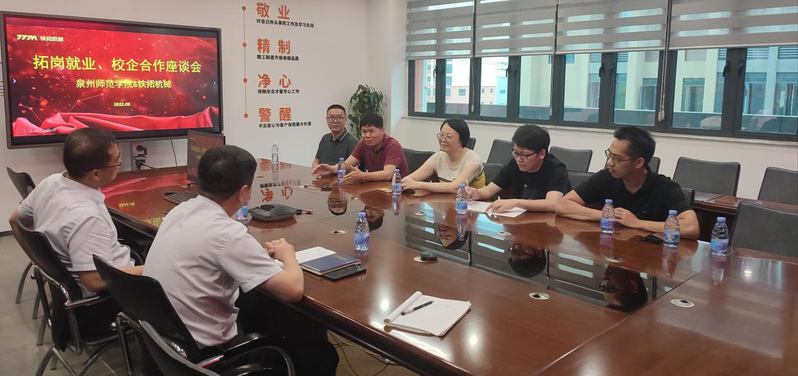 2022年8月2日,我院党委书记吴丽双带领机电系主任刘孝锋、机电系专业教师一行走访福建铁拓机械股份有限公司,召开访企拓岗促就业活动。