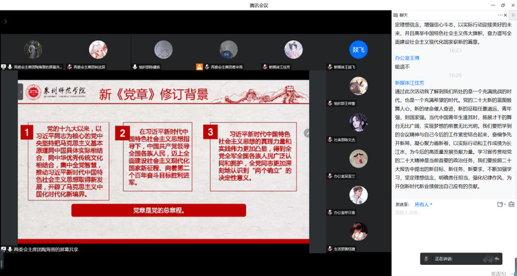 为深入学习宣传贯彻党的二十大精神,提高学院学生会工作人员思想政治素质与工作能力水平,我院于2023年1月18日下午在线上举办2022-2023学年第一学期学生会工作人员培训班。此次培训由学院学生会主席团成员宣讲,全体学生会工作人员参加。