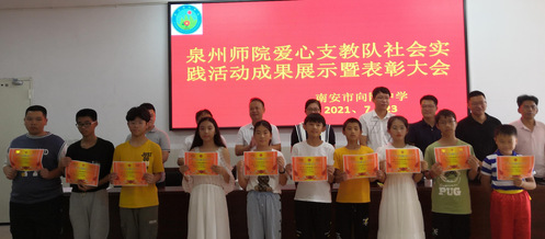 7月23日上午,泉州师院2021年暑期向阳中学爱心支教社会实践活动成果展示暨表彰大会在向阳中学礼堂举行。向阳乡党政领导,泉州师院学工部相关老师和实践队全体成员,向阳中学领导、老师和2021级新生,兴才励志成长基地相关负责人等参加会议。会议由泉州师院实践队队员袁岚岚、陈雅佳主持。