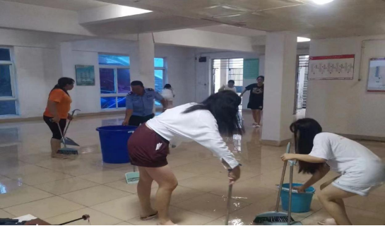 台风登陆当天,学校所在地出现强风和持续性降雨。宿管中心主任带头奋战一线,和值班人员进行24小时轮流值守,随时随地处理突发事件,发现问题及时解决。学生公寓区多处出现积水、储物柜歪斜、玻璃破碎、树木倒伏等情况,为了保证全体在校学生的生命安全,宿管中心安排工作人员及时进行积水处理以及各项紧急检修,精确统计住校学生人数,并持续协助学校为600余名学生送餐等工作。