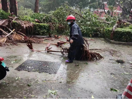 面对台风,宿管中心全体员工工作不断线,不惧风雨、奋勇向前全力守护学生安全,充分展现了宿管中心员工危难时刻能吃苦、肯担当、能打硬仗的精神风貌。