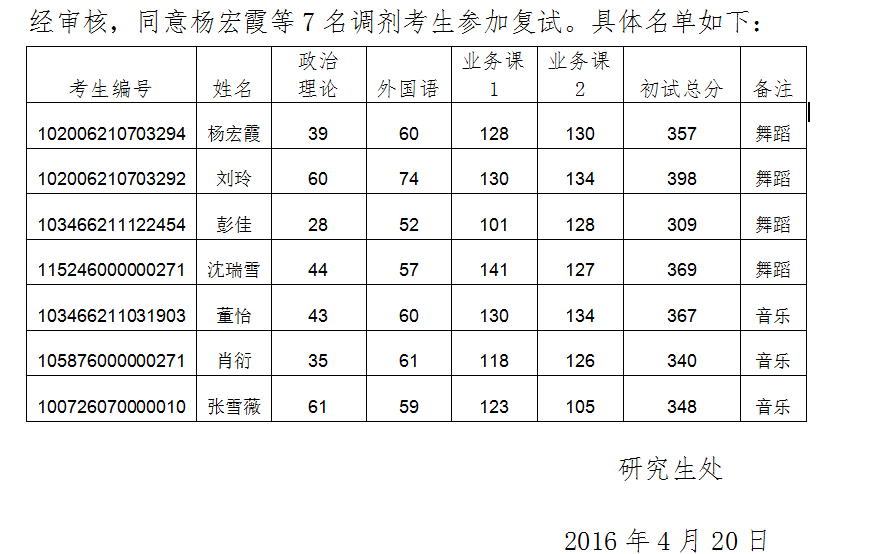 k8凯发(中国)天生赢家·一触即发2016年艺术硕士研究生 第二批调剂考生参加复试名单