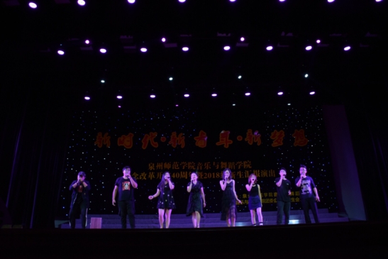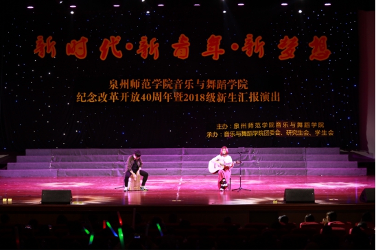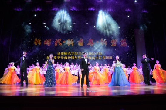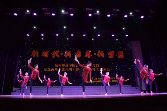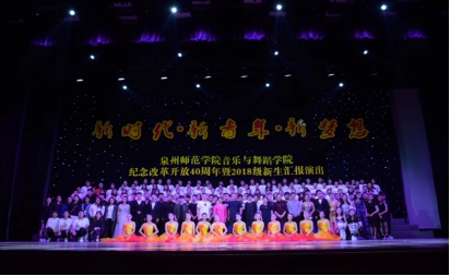 2018级全体同学共同表演《强国一代有我在》唱响新时代青年的新梦想,歌声激励着全体青年用蓬勃的青春力量筑梦新时代,用勇于开创的青春担当成为强国新一代泉州师范院音乐与舞蹈学院新时代・新青年・新梦想——纪念改革开放40周年暨2018级新生报演出圆满落下了帷幕。